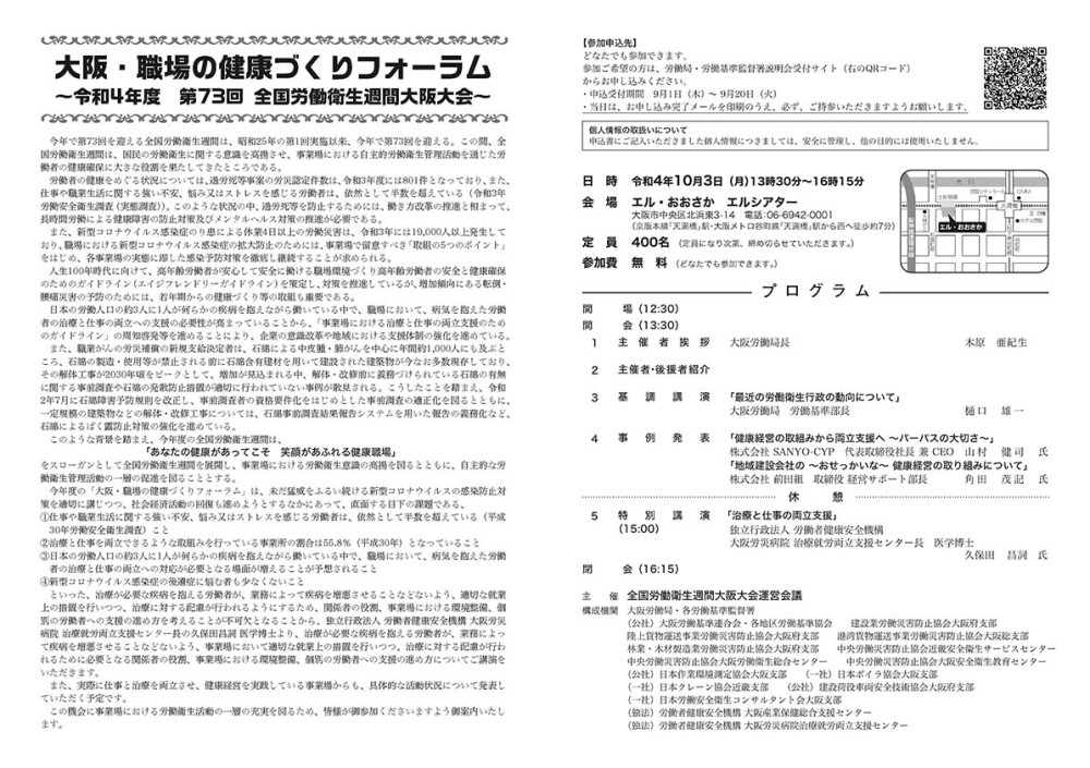大阪府内で開催される健康関連イベントの情報を掲載しています。